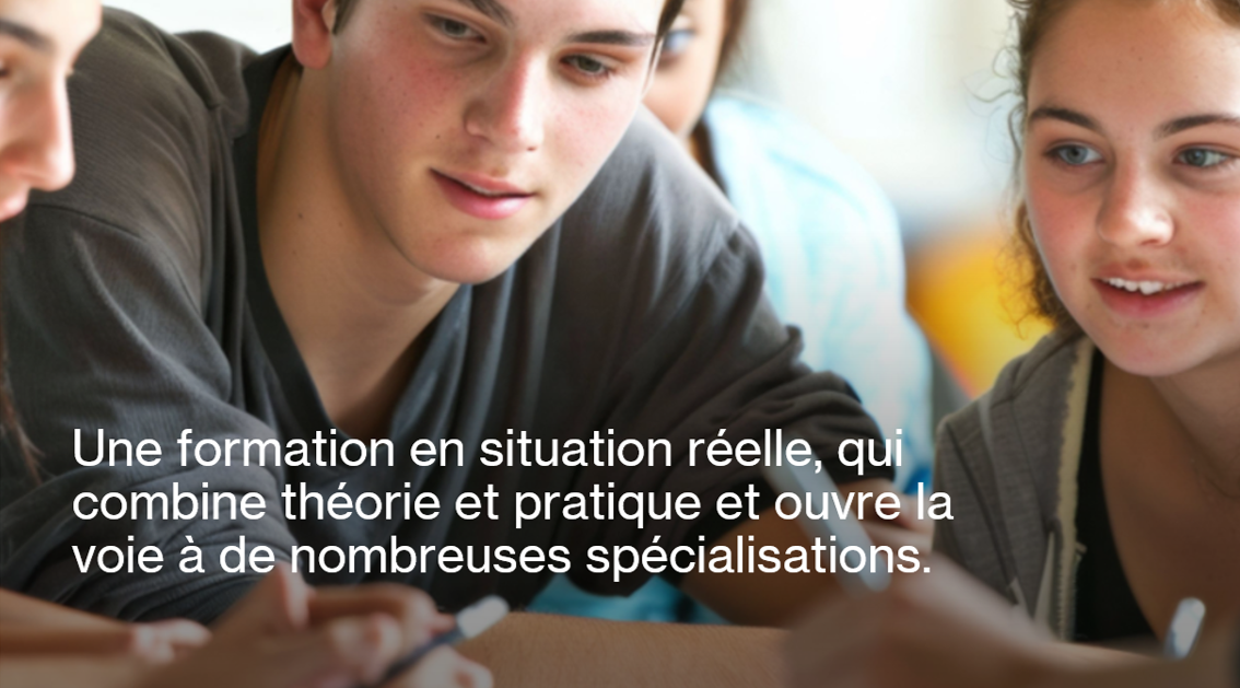 L’ensemble de ces cours seront alternés avec des périodes en entreprise et ton maître d’apprentissage veillera à ce que tu puisses mettre directement en application la théorie en encadrant ton travail au bureau.